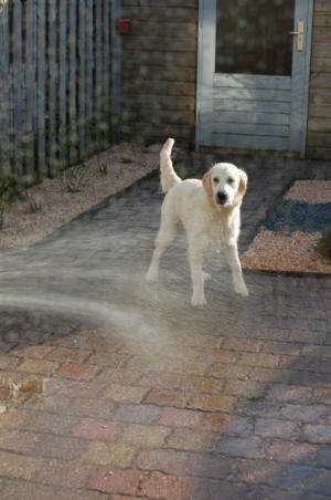 Geef Alex een tuinslang en laat Hayley toekijken. En zie hieronder het resultaat: